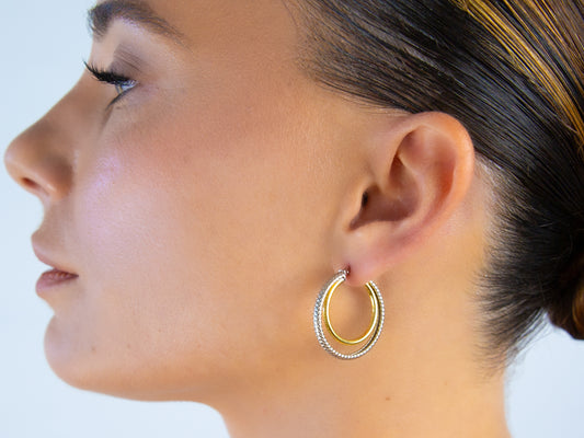 two tone leaf earrings