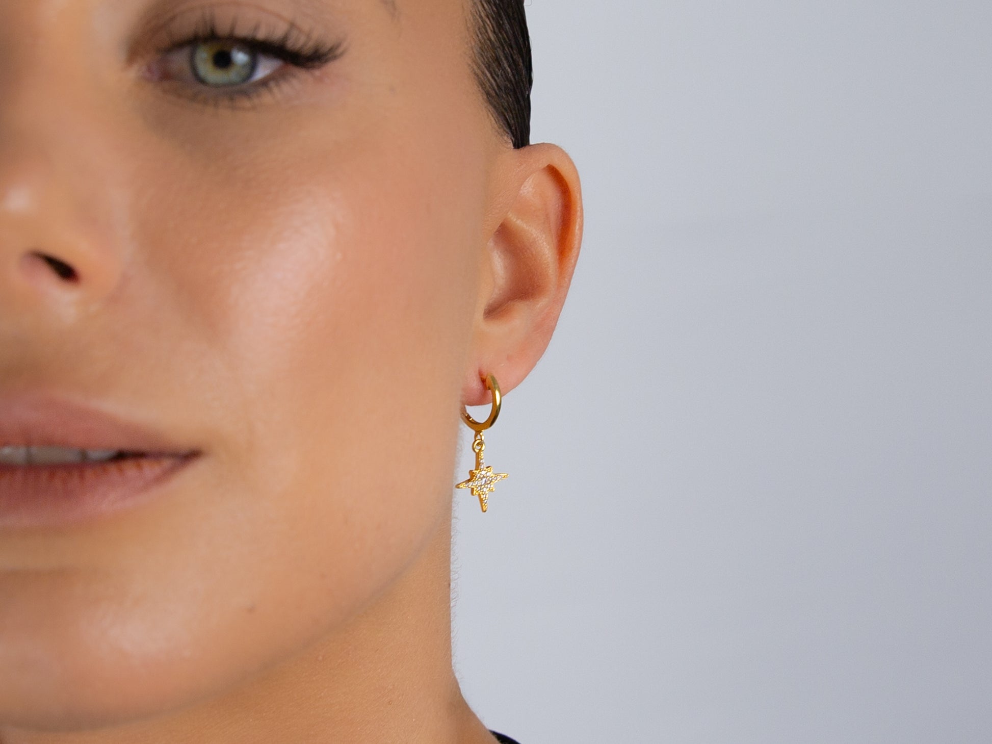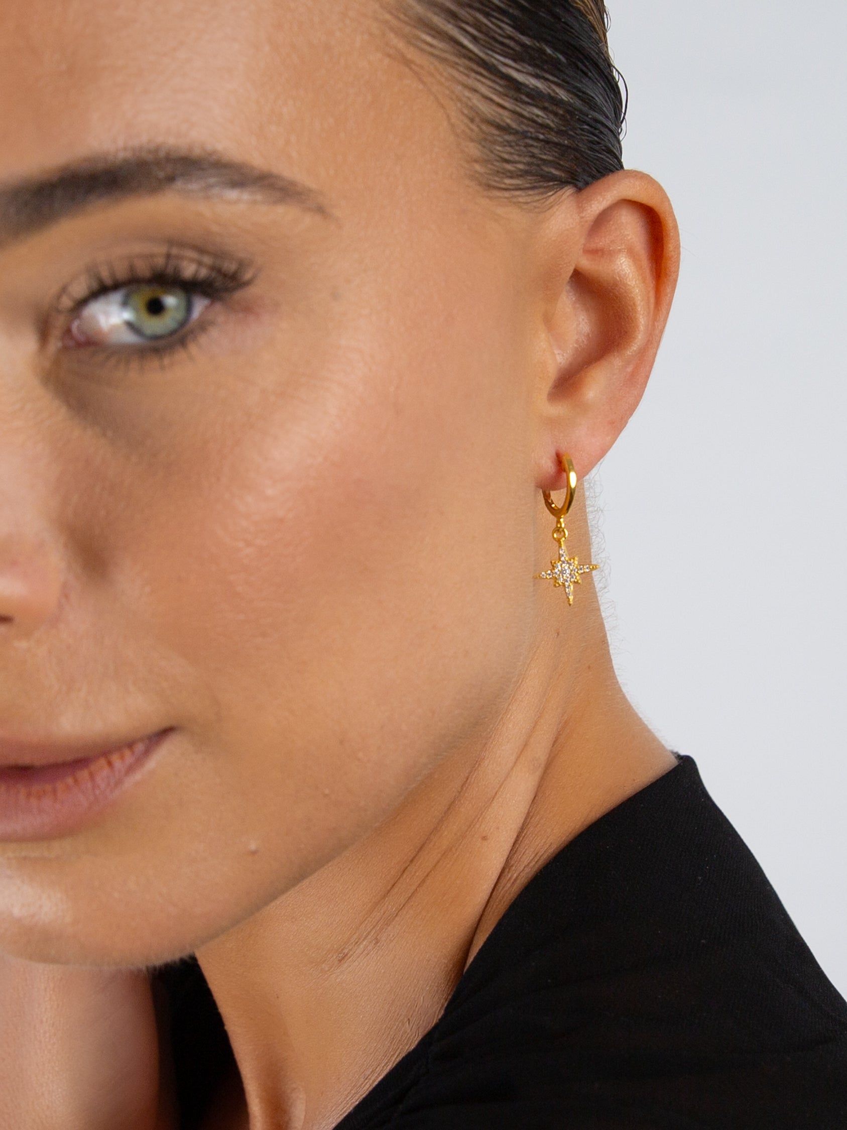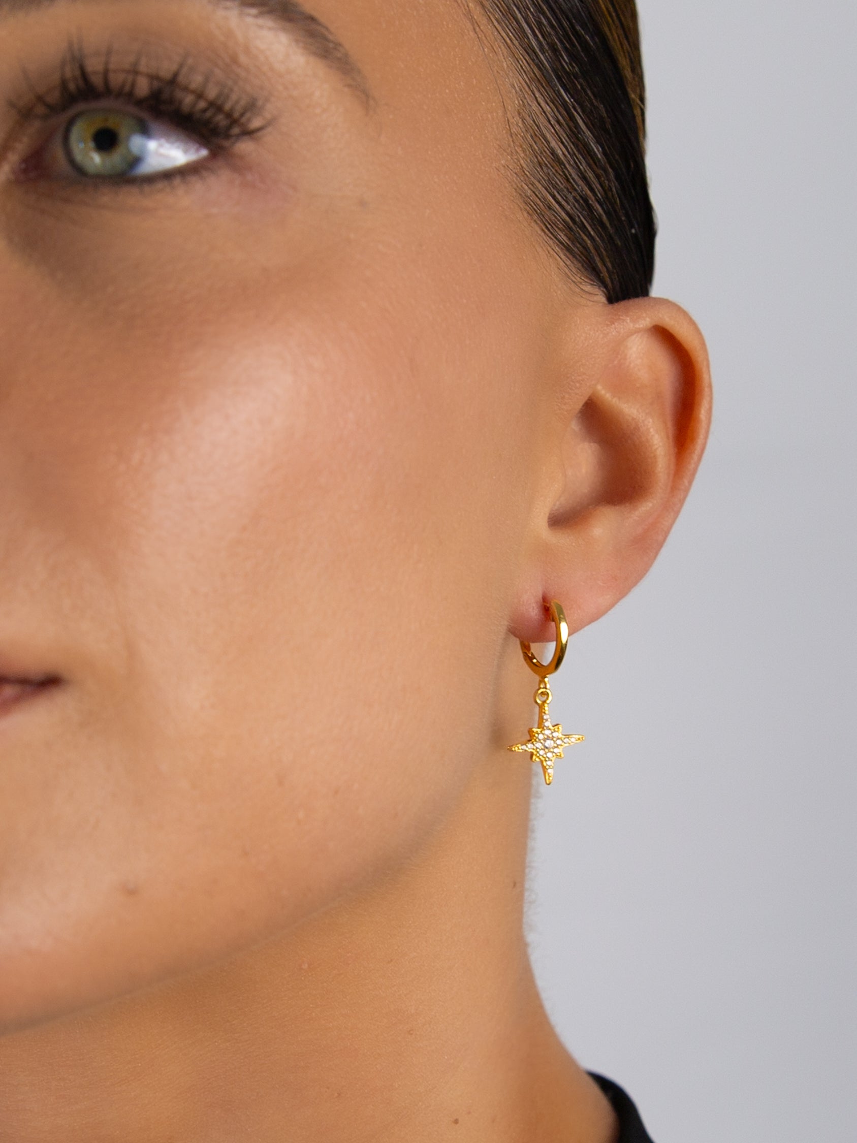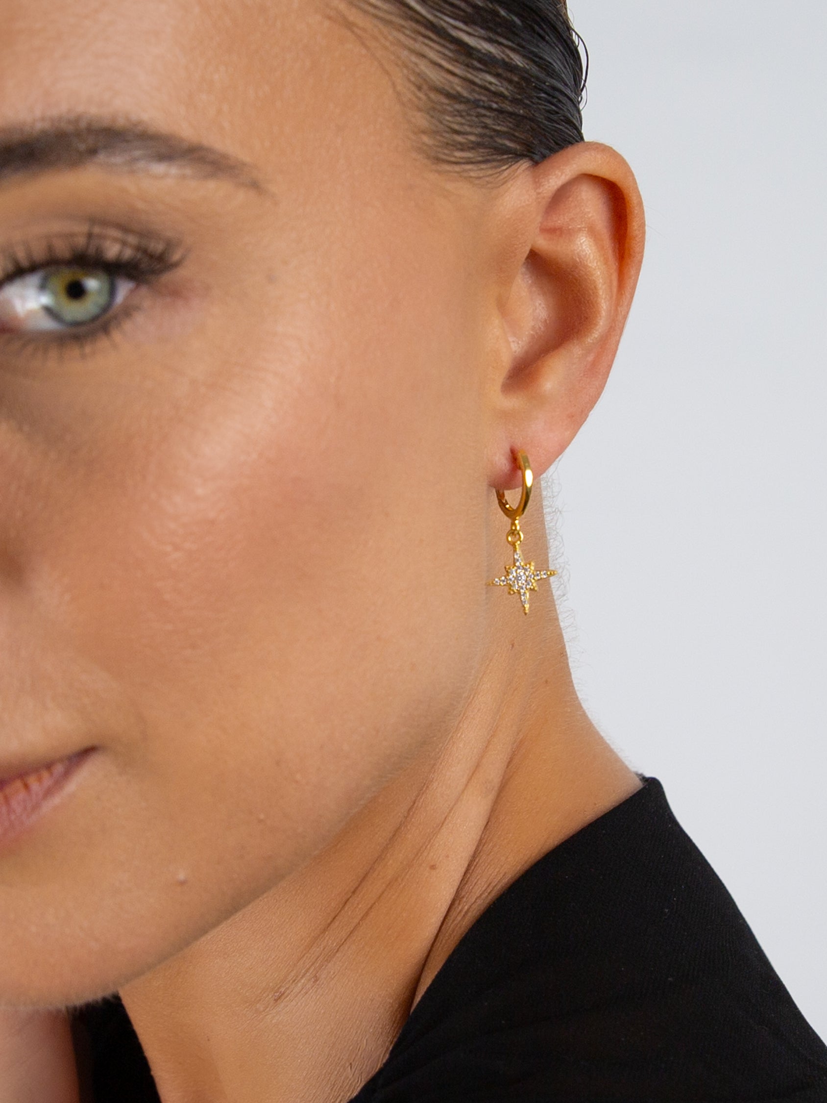 cz north star charm huggie
