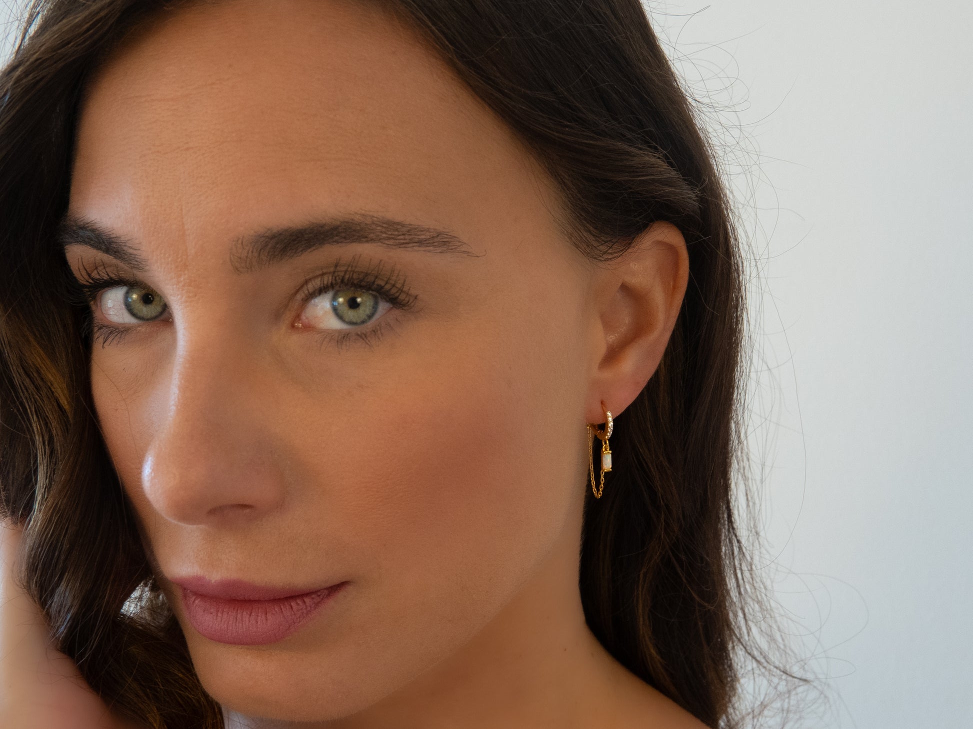 As final touch, there is a chain which goes from the front to the back of the earring.